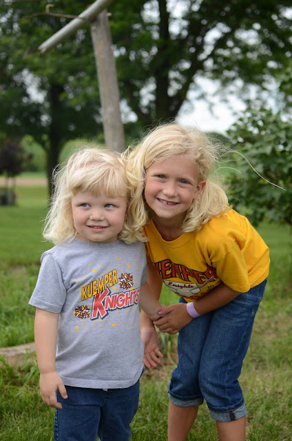 | Cousins Miya and Kennedy supporting the Kuemper Knights. P&M cheered "Jakey Number 4" at the game. I'm pretty sure he had the biggest fan section. |